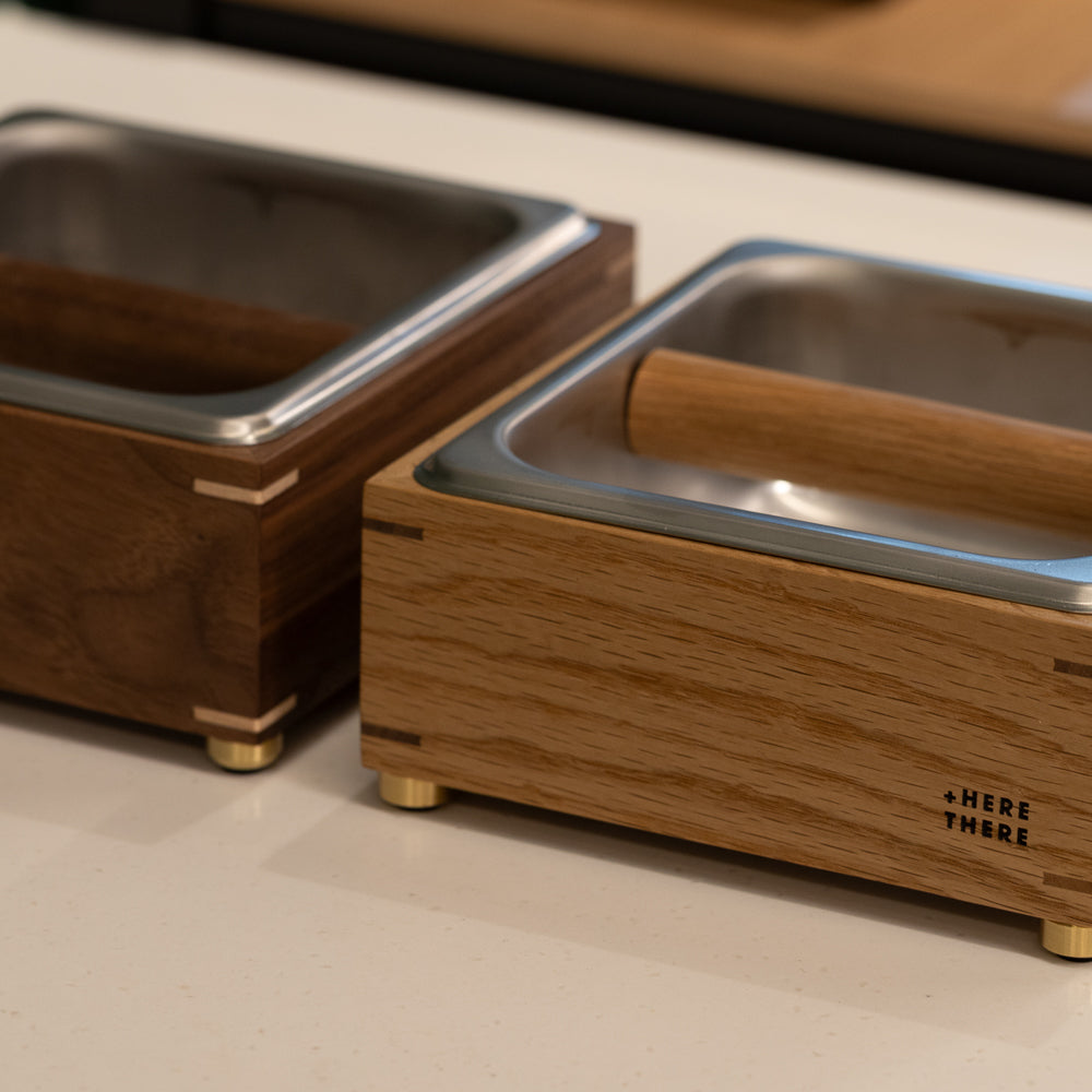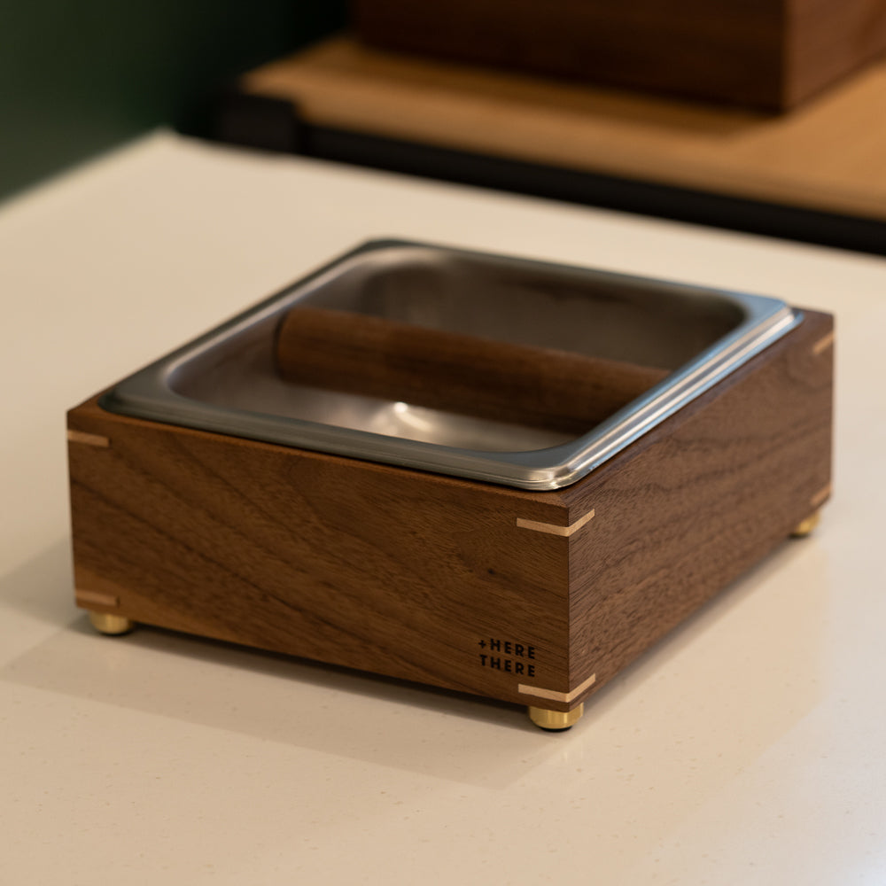 A compact wooden knock box, made for everyday espresso at home.