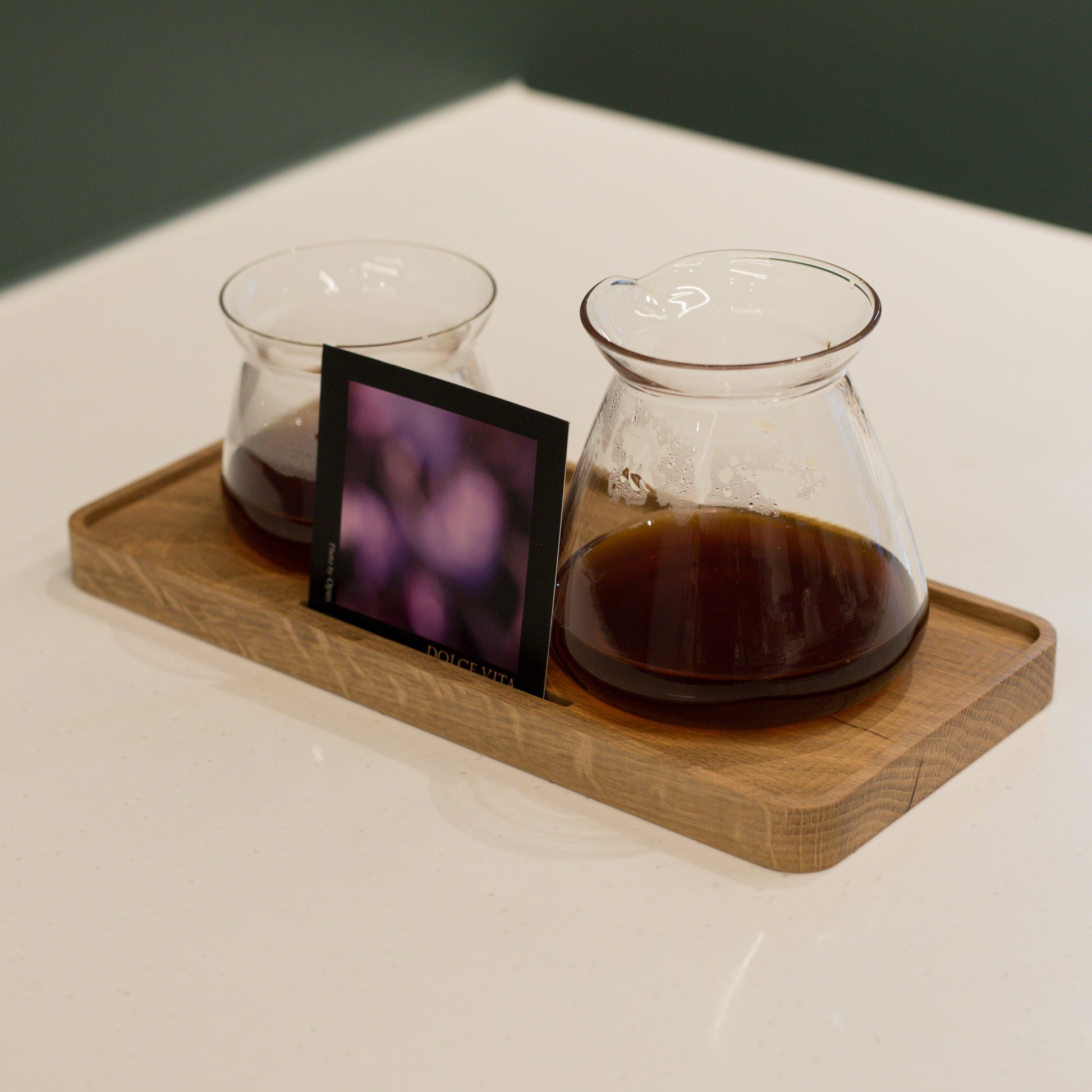 This Coffee Tray with Raised Lip is designed to hold your cup and server securely, with a subtle edge that keeps everything where it should be.